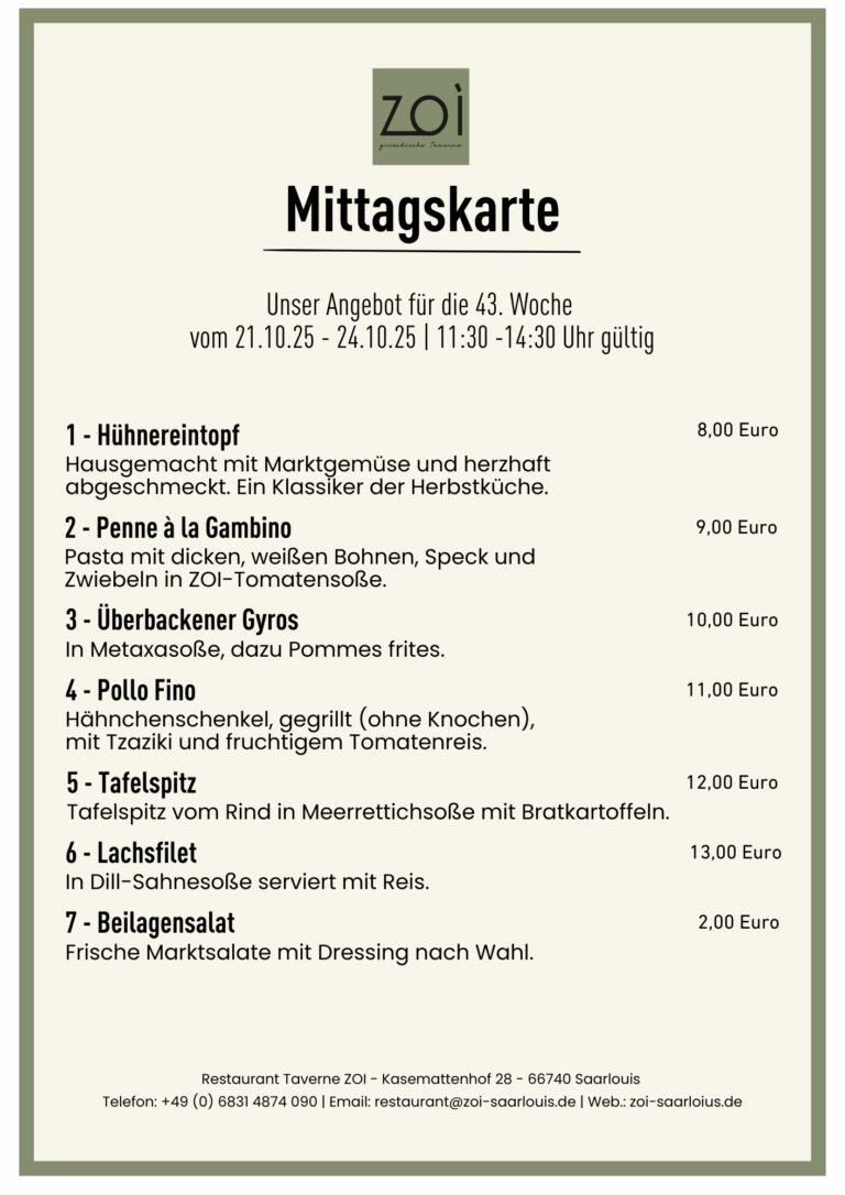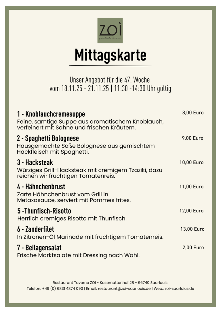 Di, Mi, Do, Fr. & So.: 11:30 bis 14:30 Uhr